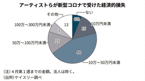 調査はコンサルティング会社のケイスリーが4月3~10日までネットで実施し、音楽や演劇、美術関連に携わる3357人から回答を得た。都内居住者が過半数だった。