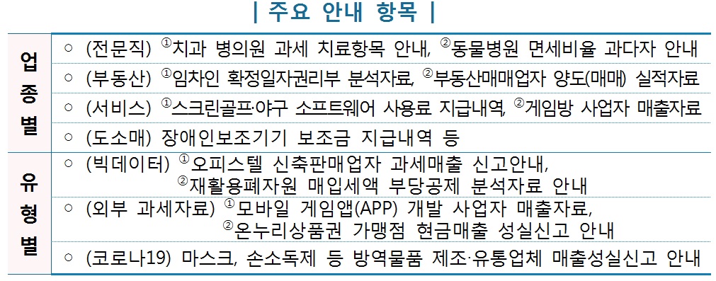 | 업종·유형별 맞춤형 신고도움자료 제공 |
