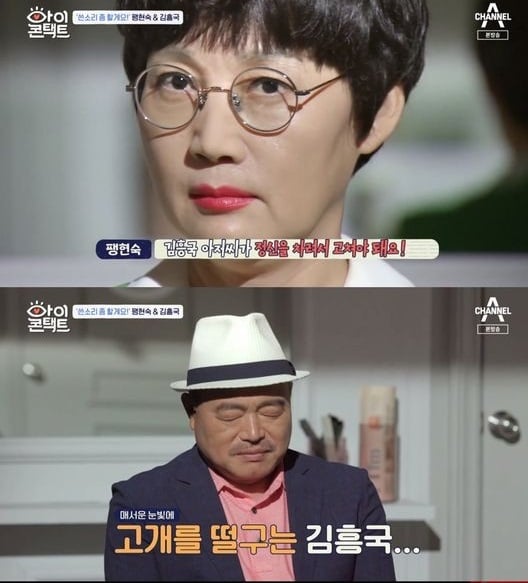 지난 4일 방송된 채널A의 침묵 예능 프로그램 '아이콘택트'에서는 팽현숙이 김흥국을 눈맞춤방에 초대해 진심어린 조언을 건네는 장면이 방송됐다.