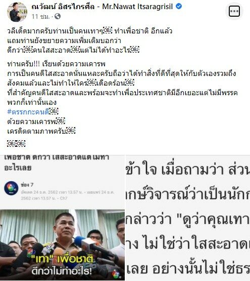 ล่าสุด ณวัฒน์ อิสรไกรศีล ได้โพสต์ข้อความผ่านเฟซบุ๊กถึงกรณีดังกล่าวอีกครั้งโดยระบุว่า