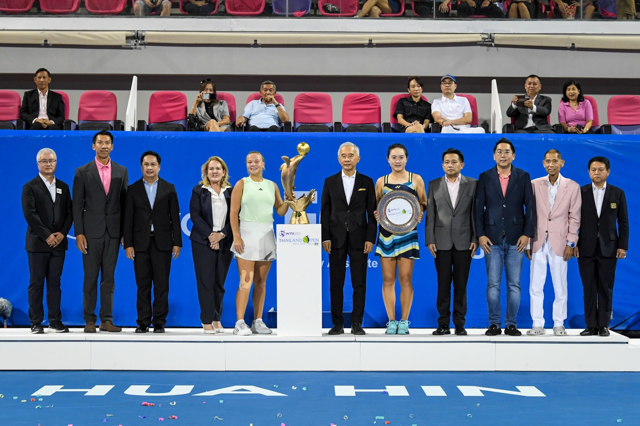 การแข่งขันเทนนิสหญิงระดับ ดับเบิลยูทีเอ 250 รายการ “ไทยแลนด์ โอเพ่น 2024 พรีเซนเต็ด บาย อีเอ” ชิงเงินรางวัลรวมสูงถึง 267,082 ดอลลาร์สหรัฐ หรือประมาณเกือบ 10 ล้านบาท ที่อารีน่า หัวหิน จ.ประจวบคีรีขันธ์ ได้มีพิธีปิดการแข่งขันอย่างเป็นทางการ เมื่อคืนวันที่ 4 กุมภาพันธ์ โดยมี นายสุวัจน์ ลิปตพัลลภ อดีตรองนายกรัฐมนตรี และนายกกิตติมศักดิ์สมาคมกีฬาลอนเทนนิสแห่งประเทศไทย ในพระบรมราชูปถัมภ์ เป็นประธานในพิธี พร้อมร่วมมอบรางวัลให้นักกีฬา